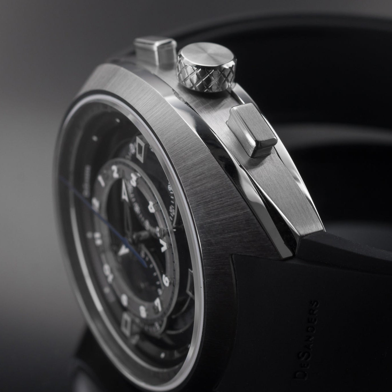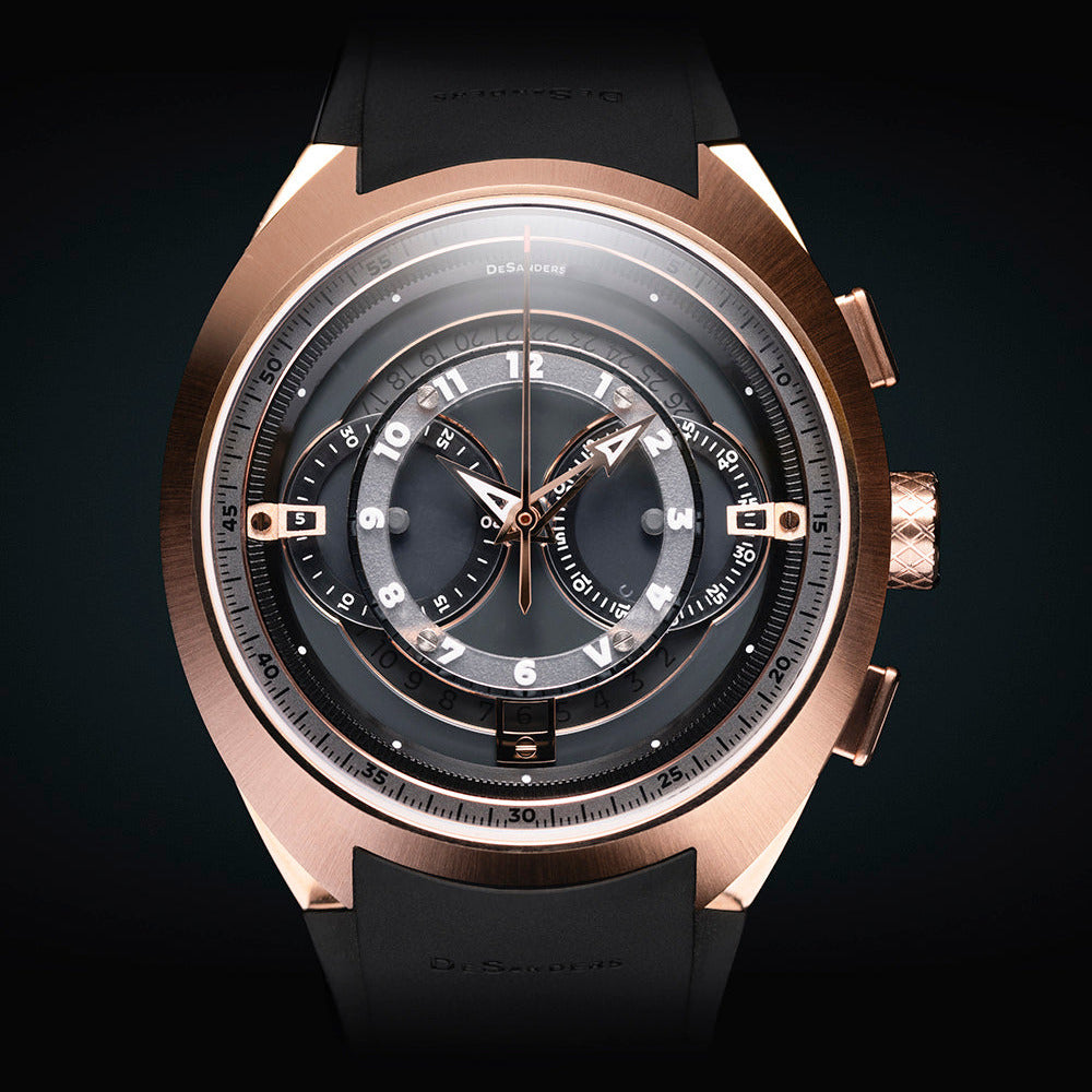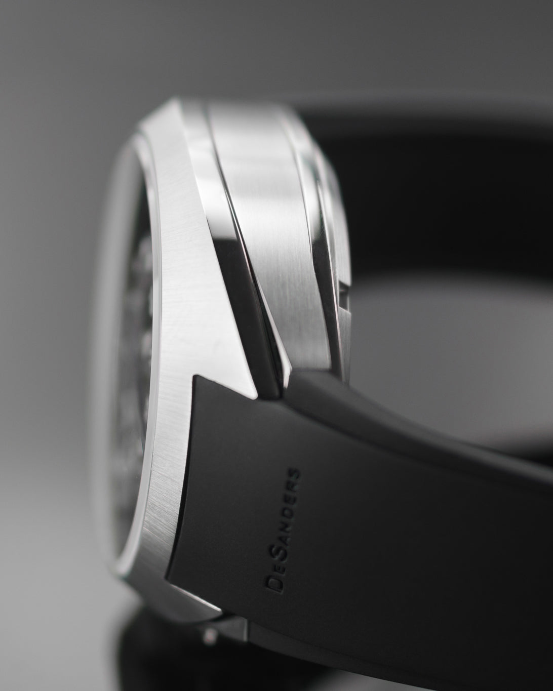 The intricate shape of the case has been cearfully extended onto the shape of both the high grade FKM rubber strap and the unique bracelet. It’s a form that feels continuous — almost organic — really making a perfect fit on the wrist.